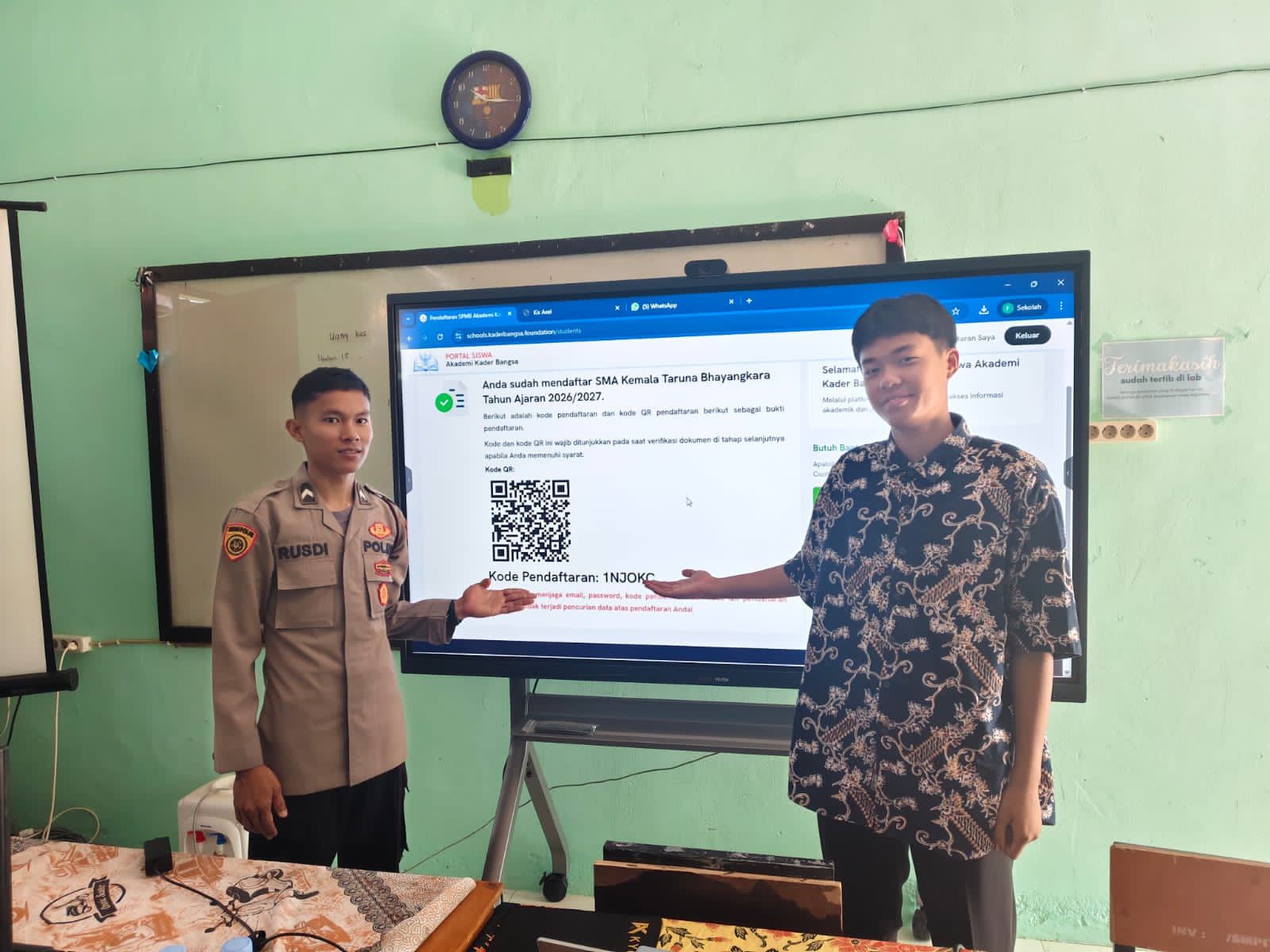 Dalam kesempatan tersebut, salah satu siswa SMPIT BIC Mentok atas nama Axel Saputra berhasil dibantu proses pendaftarannya oleh personel Bag SDM. Hingga saat ini tercatat sebanyak 13 siswa telah memenuhi syarat untuk mengikuti seleksi masuk SMA Kemala Taruna Bhayangkara.
