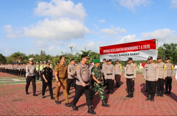 Polres Bangka Barat menggelar Upacara Gelar Pasukan dalam rangka Operasi Keselamatan Menumbing Tahun 2026 di Lapangan Merah Mako Polres Bangka Barat, Senin (2/2/2026) pagi.