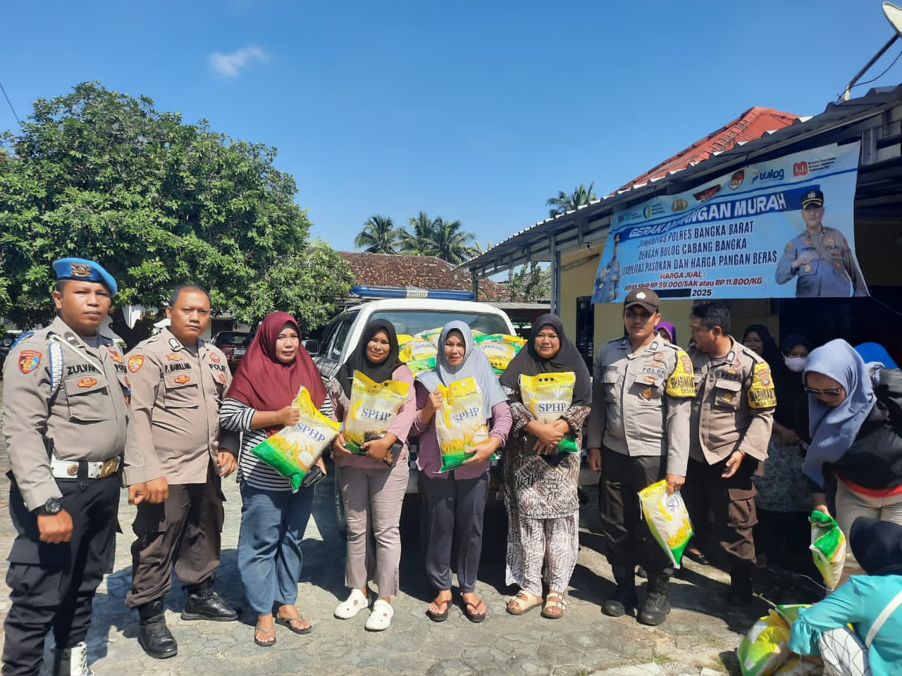 Polres Bangka Barat menggelar Operasi Pasar Murah pada Kamis, 25 September 2025, di enam lokasi strategis di wilayah Bangka Barat. Dari 10.000 kilogram beras yang disediakan, sebanyak 1.300 warga berhasil mendapatkan beras dengan harga terjangkau Rp 11.800 per kilogram, atau Rp 59.000 per karung.